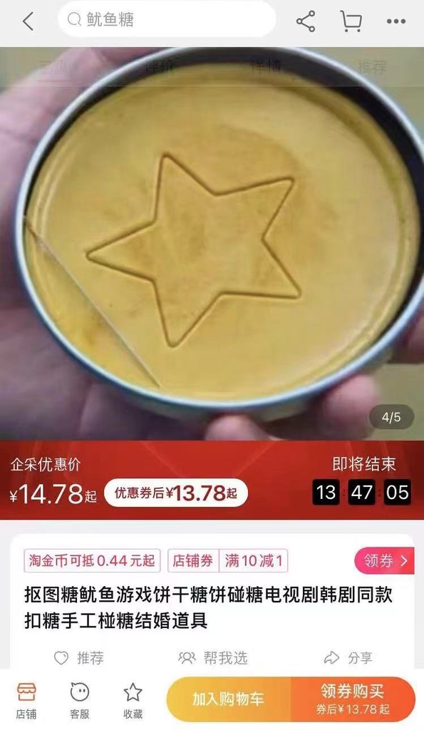 | ▲ 타오바오에서 팔리는 달고나 [타오바오 앱 스크린샷. 재판매 및 DB 금지] |