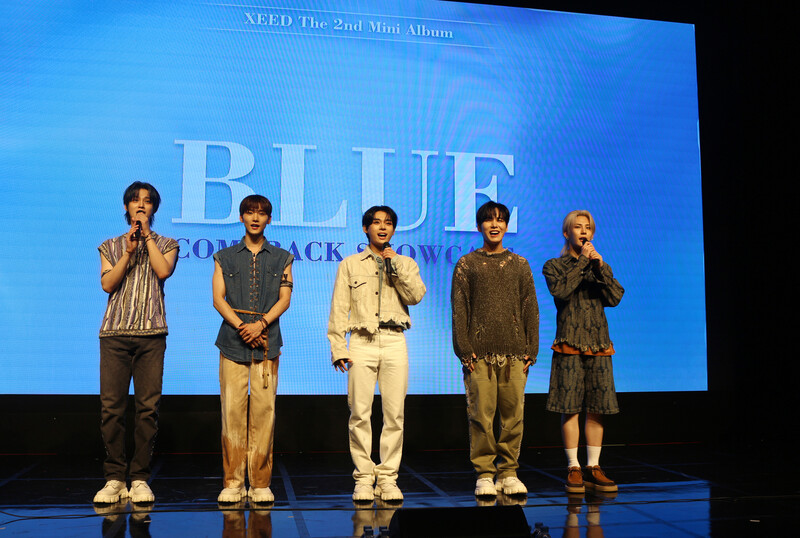 These photos, taken during the XEED's 'BLUE' comeback showcase, show the members of XEED.