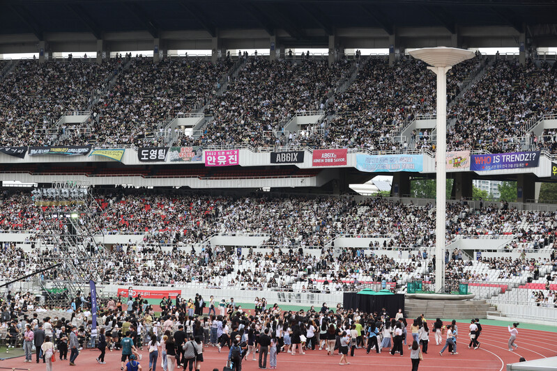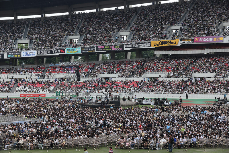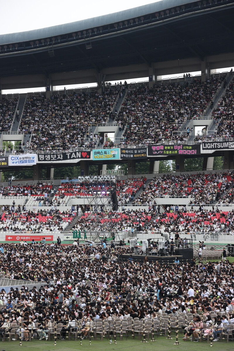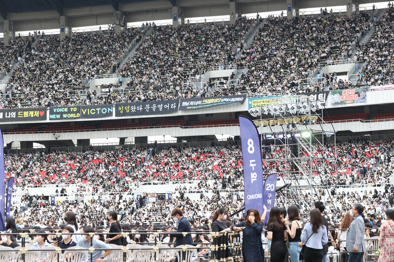 People pack Jamsil Olympic Main Stadium in Seoul to see the 28th Dream Concert, which was held in-person for the first time in three years, on June 18, 2022. (Yonhap)