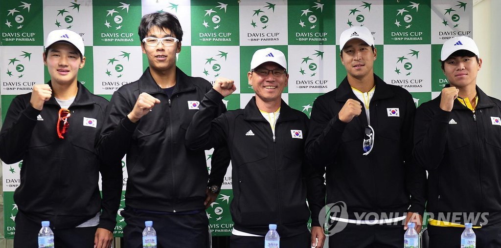 | ▲ 2017년 9월 데이비스컵을 앞둔 권순우(왼쪽)와 정현(왼쪽에서 두 번째). [대한테니스협회 제공. 재판매 및 DB 금지] photo@yna.co.kr |