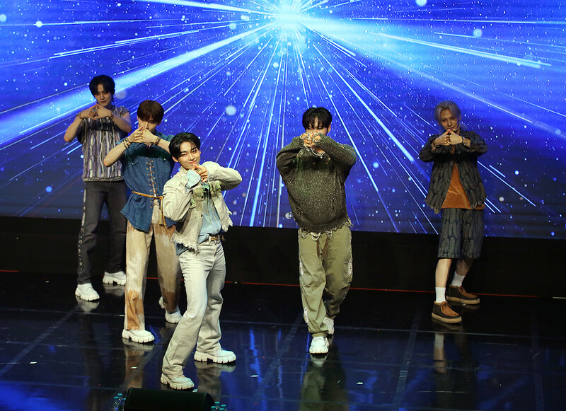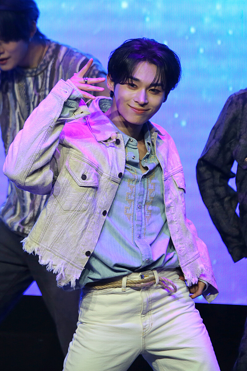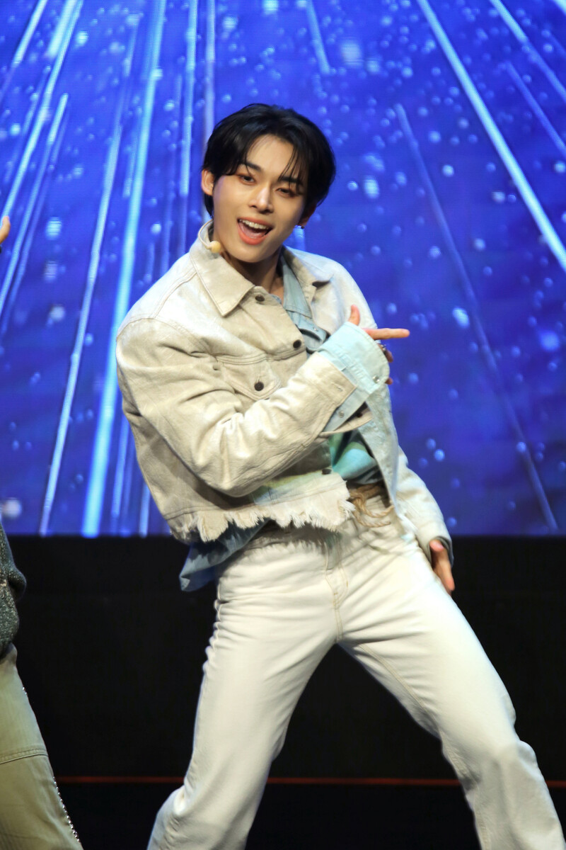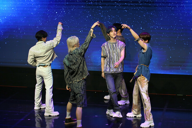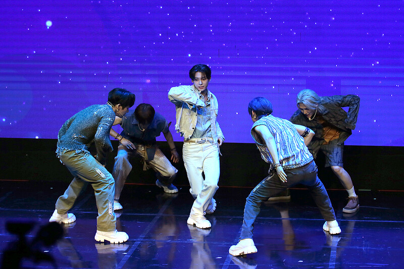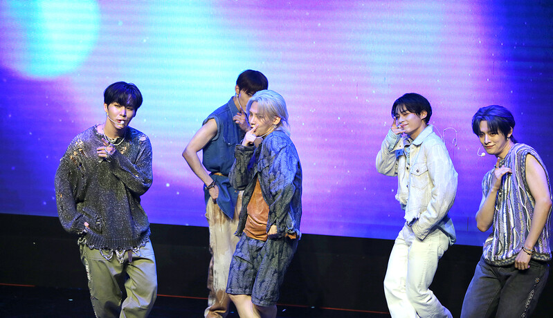 These photos, provided by Nature Space, show the members of XEED during 'BLUE' comeback showcase.