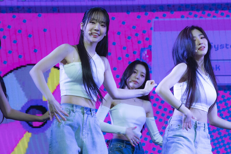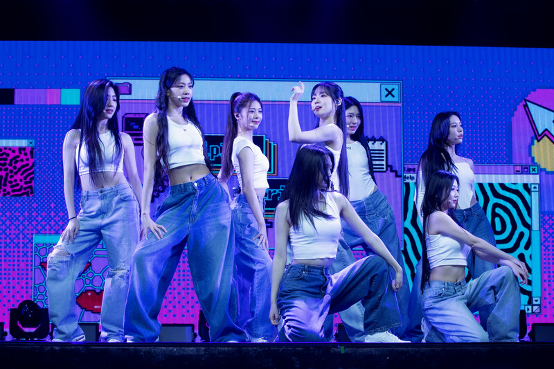 These photos taken during the media showcase of K-pop girl group tripleS LOVElution for their latest album “Muhan” show the members perform their title track “Girls’ Capitalism.”