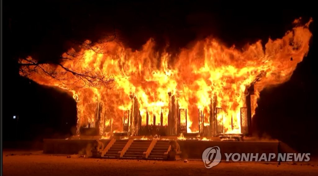 | ▲ 내장사 대웅전 화재 (정읍=연합뉴스) 5일 오후 6시 50분께 전북 정읍시 내장사 대웅전에서 불이 나 불꽃이 치솟고 있다. 2021.3.5 [전북소방본부 제공. 재판매 및 DB금지] jaya@yna.co.kr |