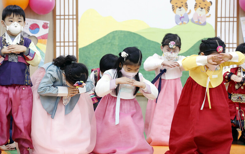 When bowing to the elders, they often bow and say New Year's greetings, such as "Happy New Year," but since taking a bow is a greeting itself, it is traditional manners to wait for the words of the elders without saying anything, according to the National Institute of Korean Language.