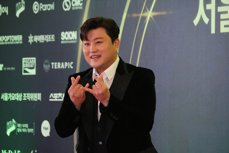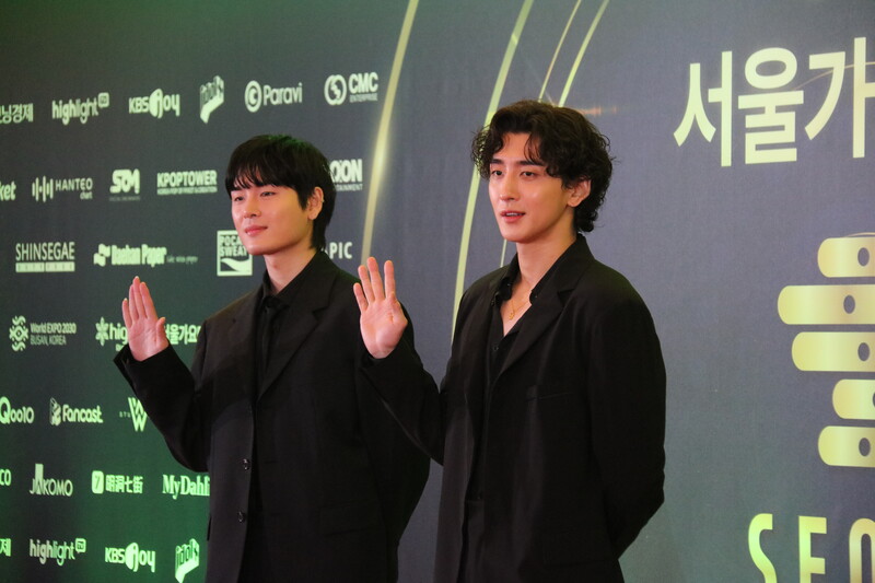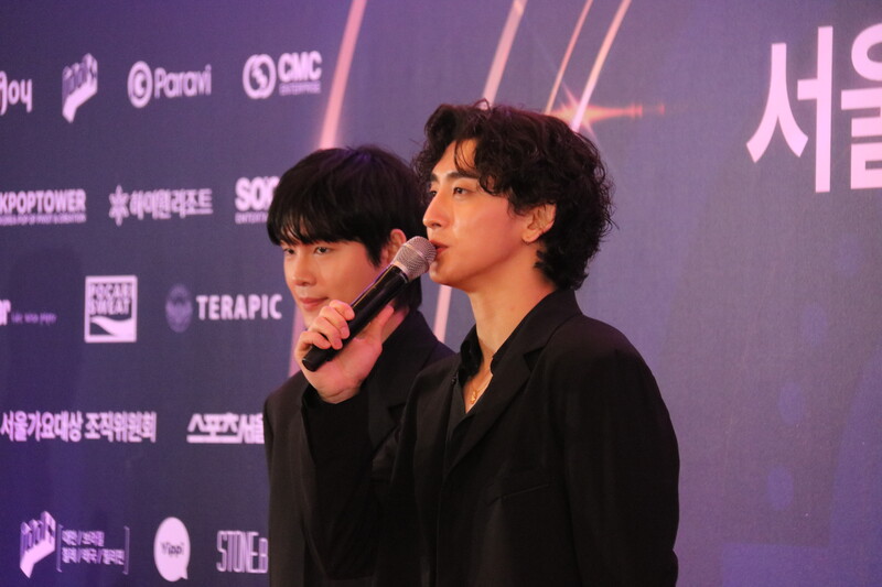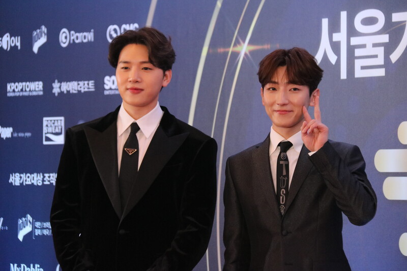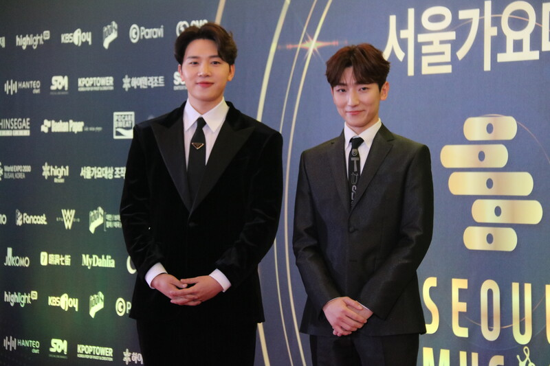 These photos show MeloMance, Jannabi, Lee Seung-yoon, Kim Ho-joong and ZICO during the red carpet event of the 32nd Seoul Music Awards held in KSPO DOME, on Jan 19.