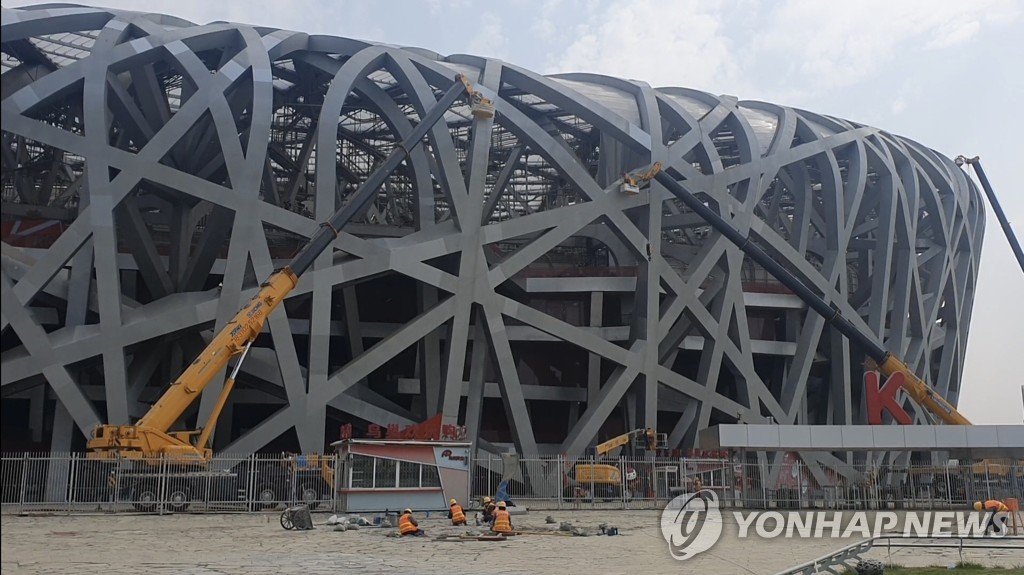 | ▲ 공사중인 2022 베이징 동계올림픽 개·폐회식장 2008 베이징 하계올림픽 주경기장으로 사용된 베이징 국가체육장(냐오차오). 2022 베이징 동계올림픽 개·폐회식에서 재활용하기 위해 공사중에 있다.[촬영 임광빈] |