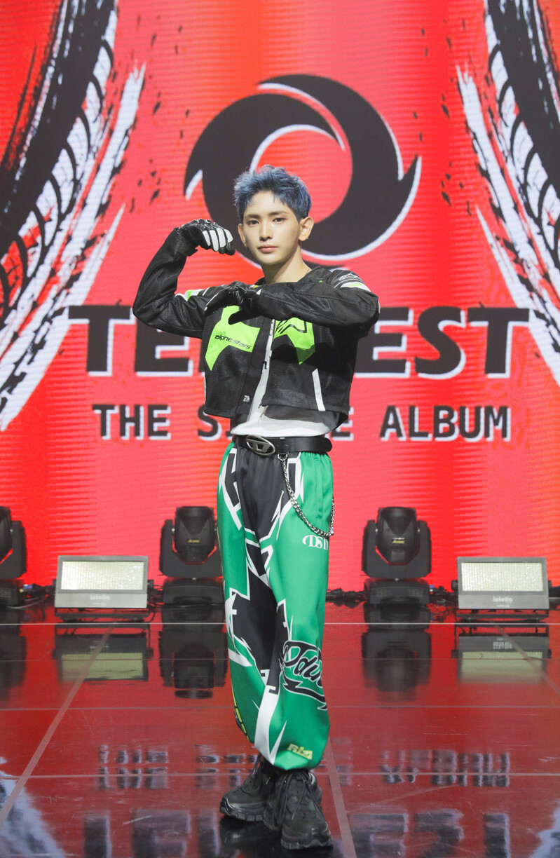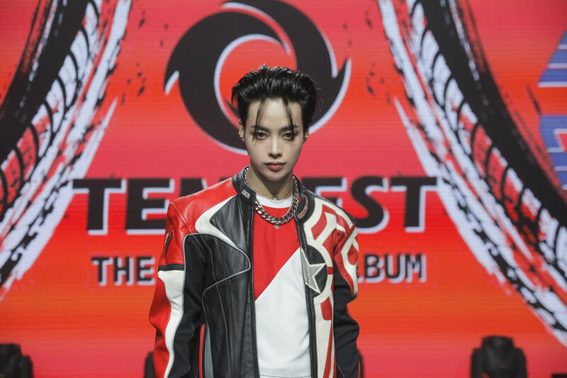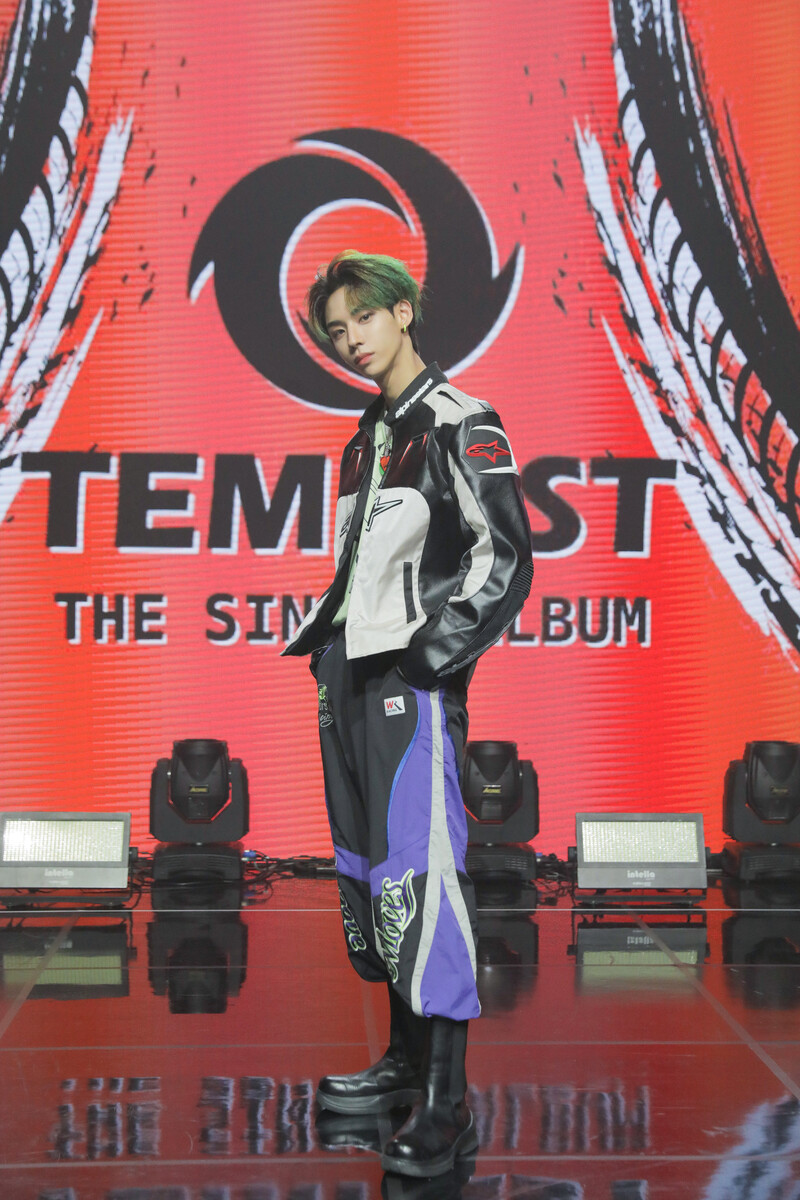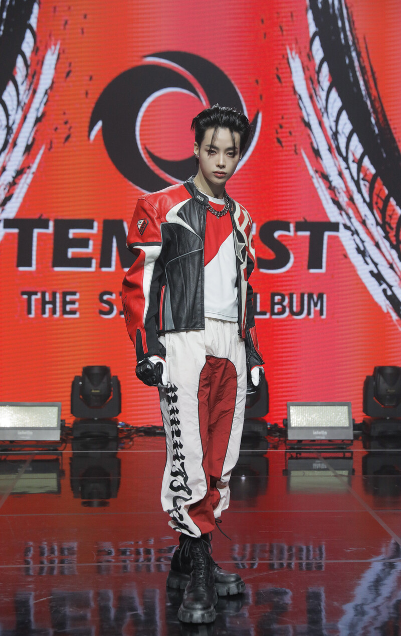These photos, provided by Yue Hua Entertainment, show the members posing for individual photos during their comeback showcase of first album 'Into The TEMPEST'.