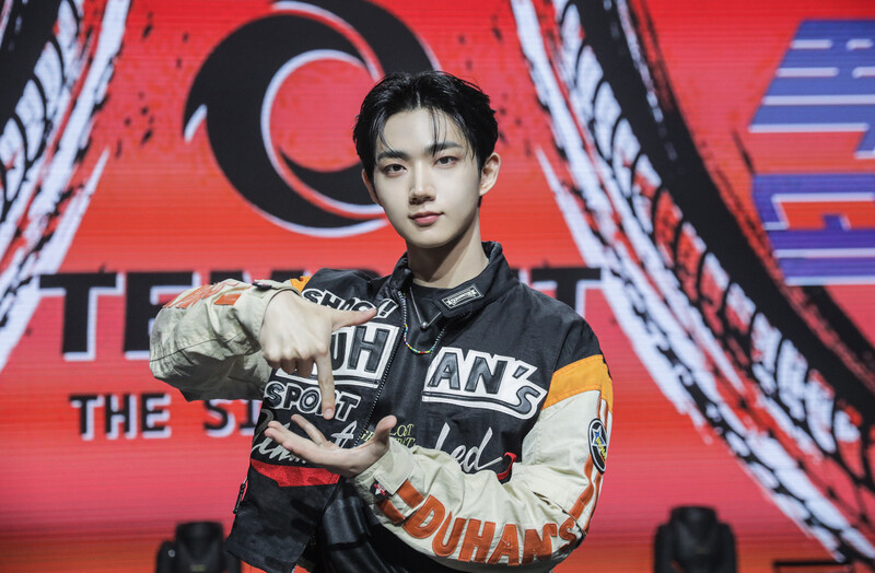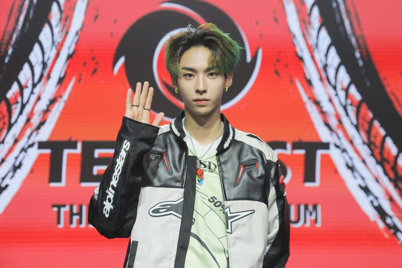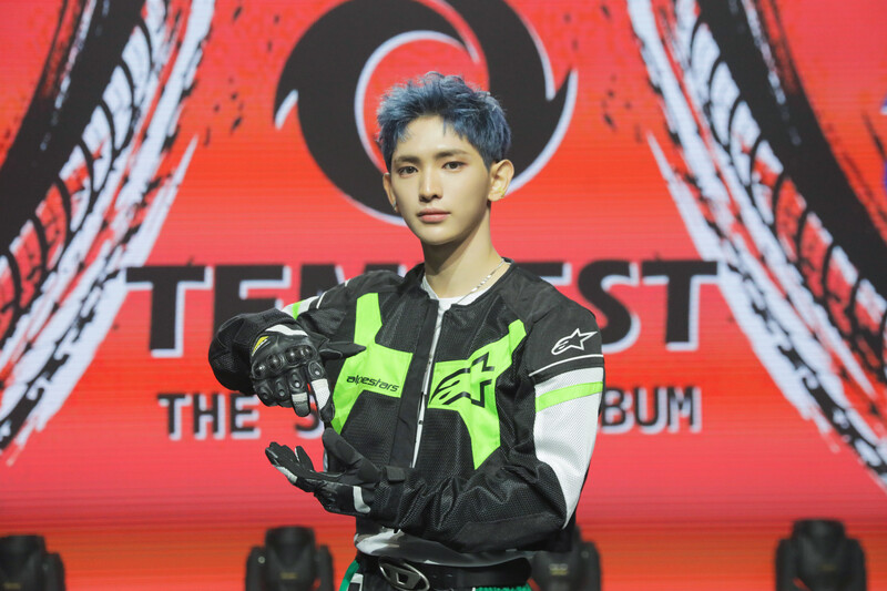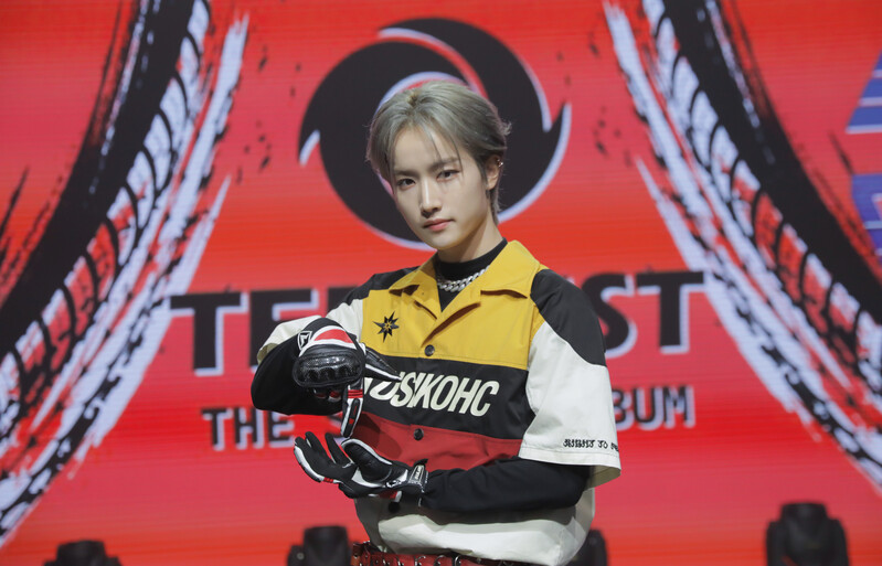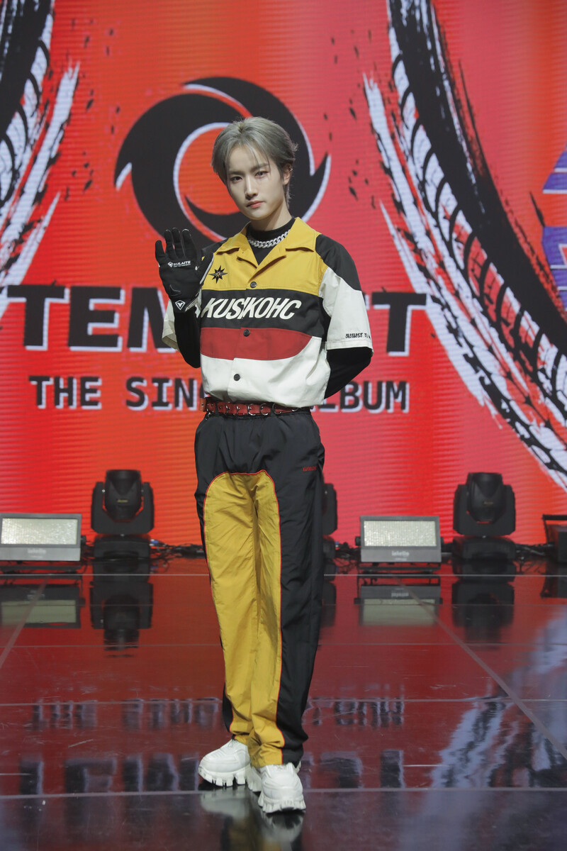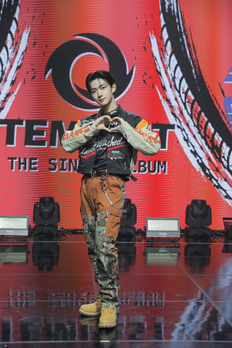 These photos, provided by Yue Hua Entertainment, show the members posing for individual photos during their comeback showcase of first album 'Into The TEMPEST'.