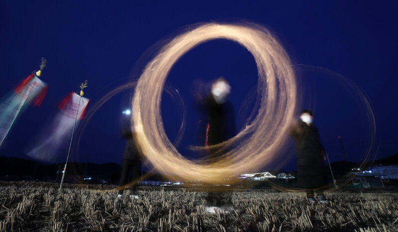 The farmers set fire to the ridge between rice fields and plow with the signal of daljip setting on fire. This is called Jwibulnori, and it has the intention to reduce damage of pests by burning weeds.
