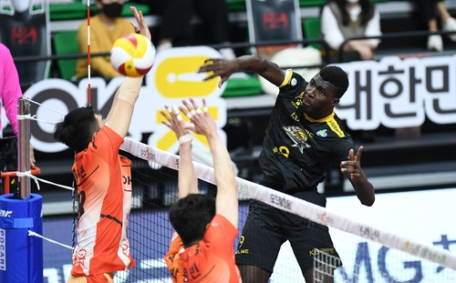 | ▲ 케이타의 고공 강타 [한국배구연맹(KOVO) 제공. 재판매 및 DB 금지] |