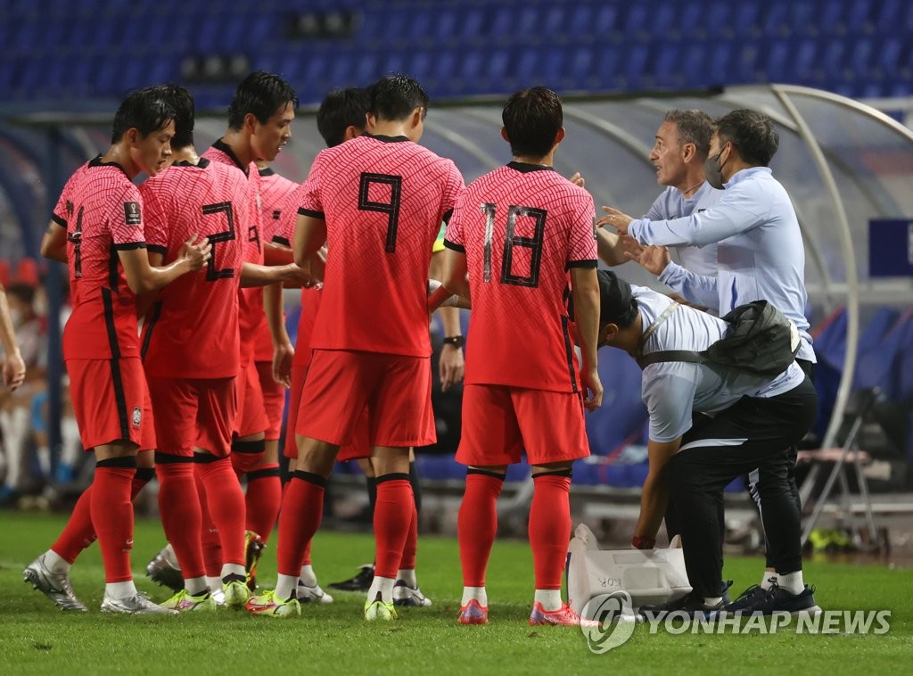 부동의 원톱 스트라이커 황의조(보르도)는 벤치에서 대기했다. 이재성(마인츠)과 이동경(울산)이 공격형 미드필더로 나선 가운데 황인범(루빈 카잔)은 수비형 미드필더이자 볼 배급자 역할을 담당했다.