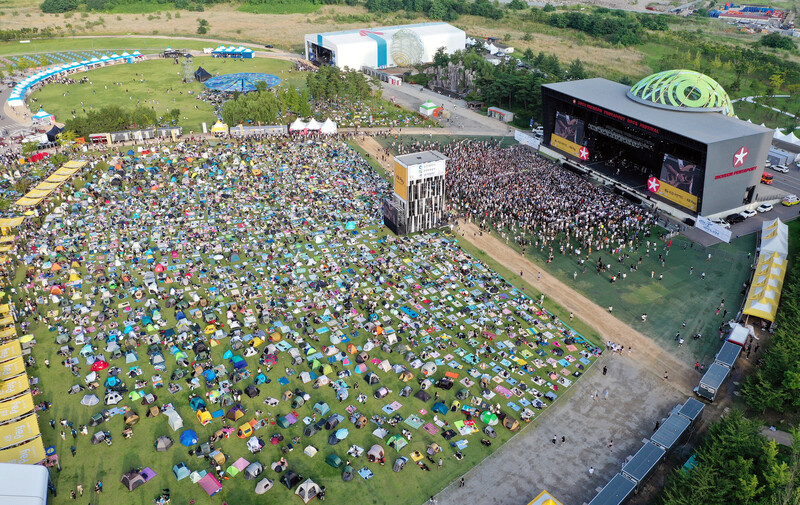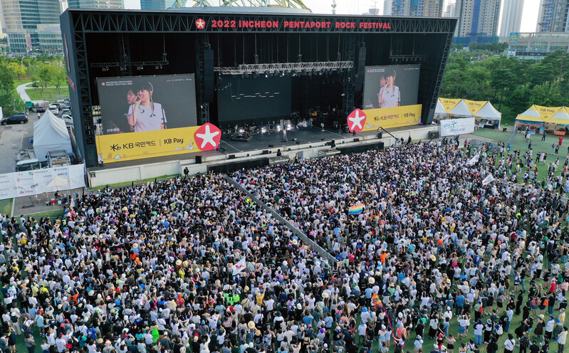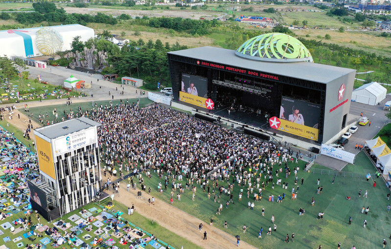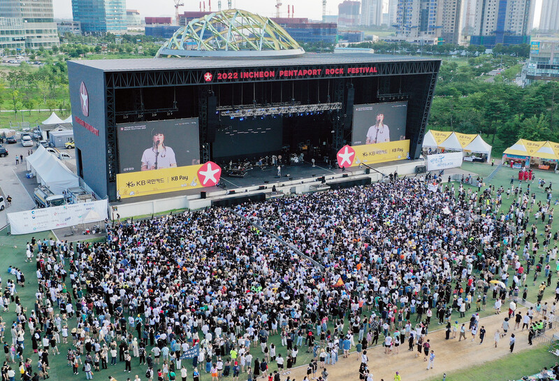Fans crowd the Incheon Pentaport Rock Festival at a park in Incheon, 40 kilometers west of Seoul, on Aug. 5, 2022. (Yonhap)