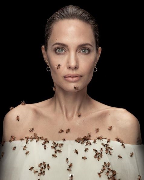 내셔널 지오그래픽은 20일(현지시간) 졸리와 사진작가이자 양봉가인 댄 윈터스가 '세계 벌의 날'을 맞아 꿀벌 6만 마리와 함께 화보를 촬영했다고 밝혔다.