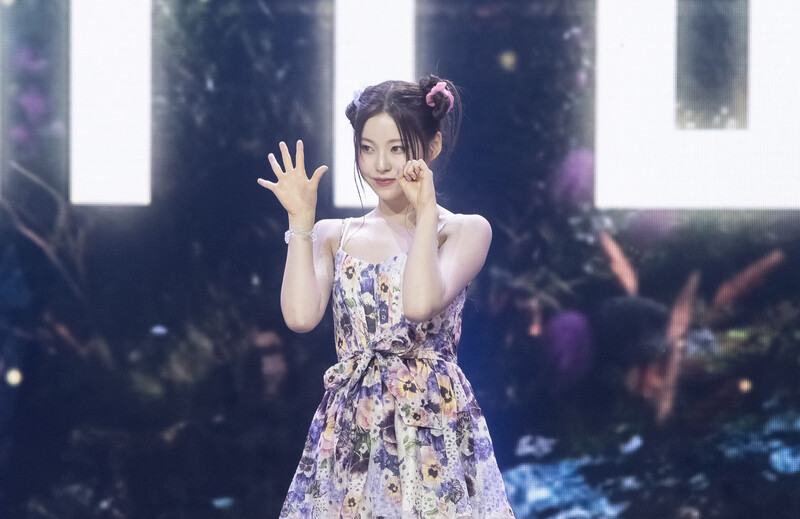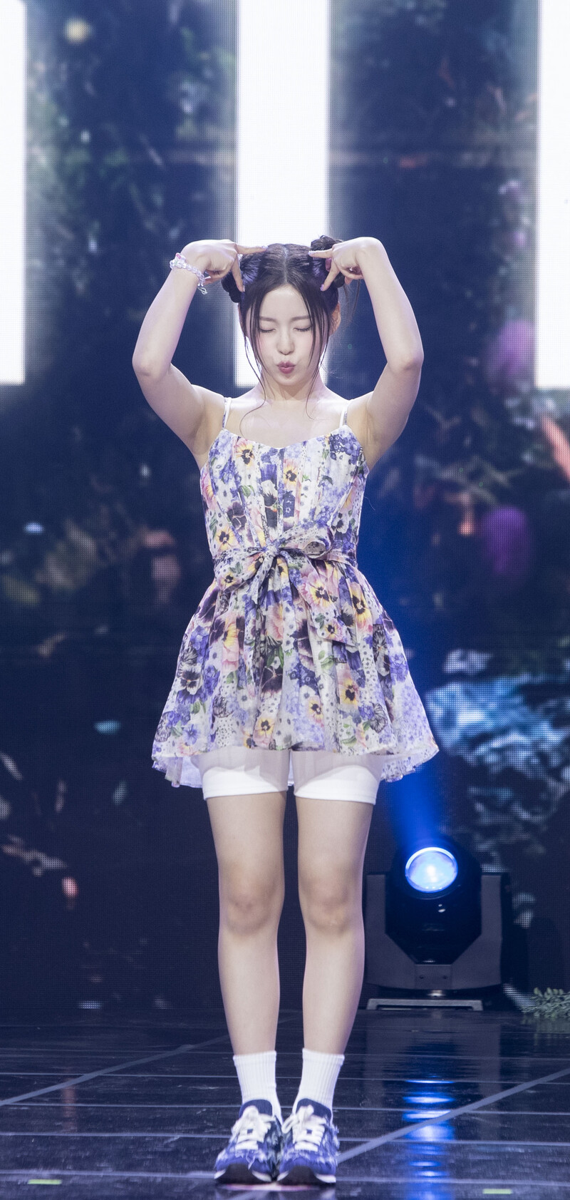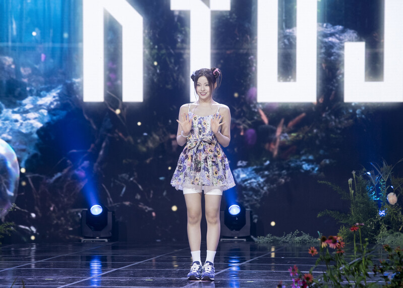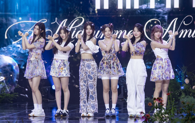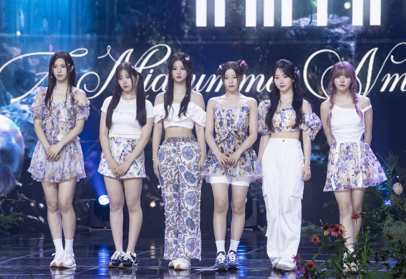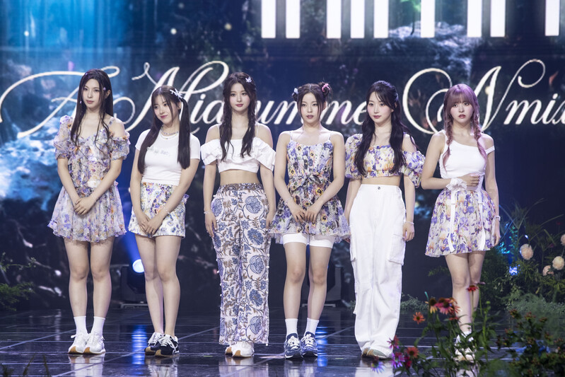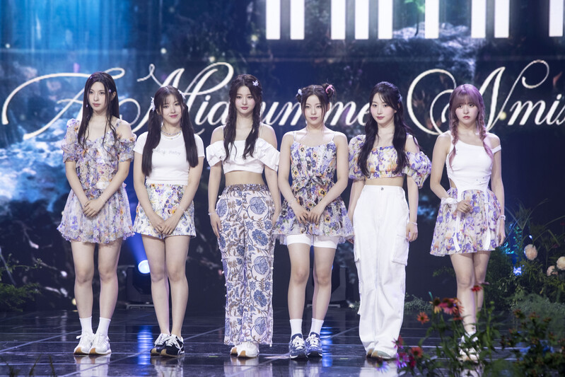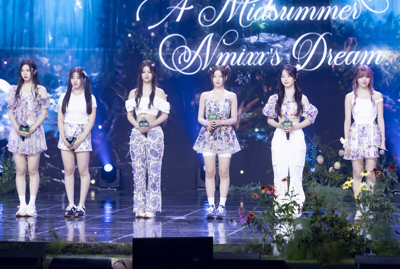 These photos taken during the media showcase of K-pop girl group Nmixx during media showcase of their album 'A Midsummer Nmixx's Dream' show members posing for their individual and group photos.