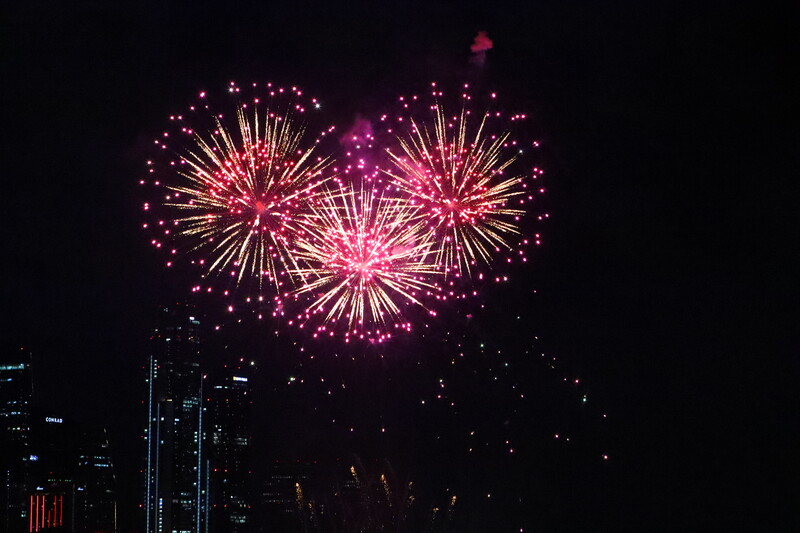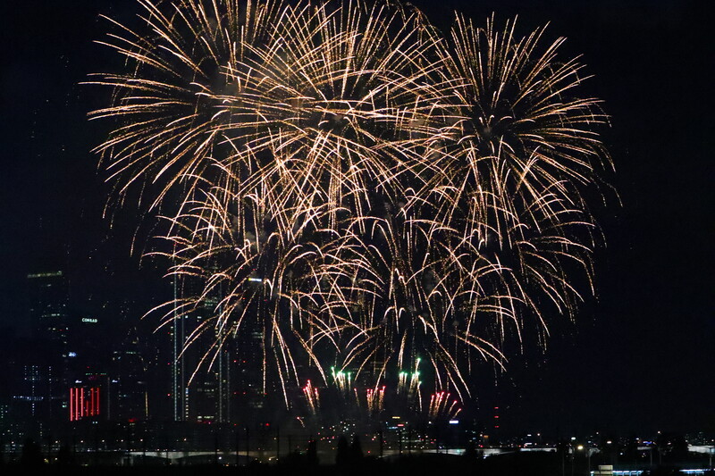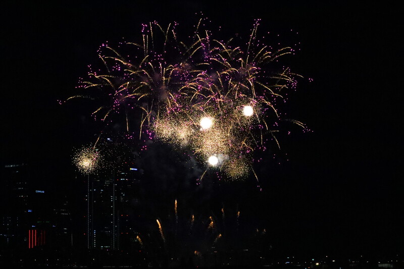 Fireworks are seen during the Seoul International Fireworks Festival around Han River Park in Yeouido, western Seoul, on Oct. 8, 2022. (Kodyssey)