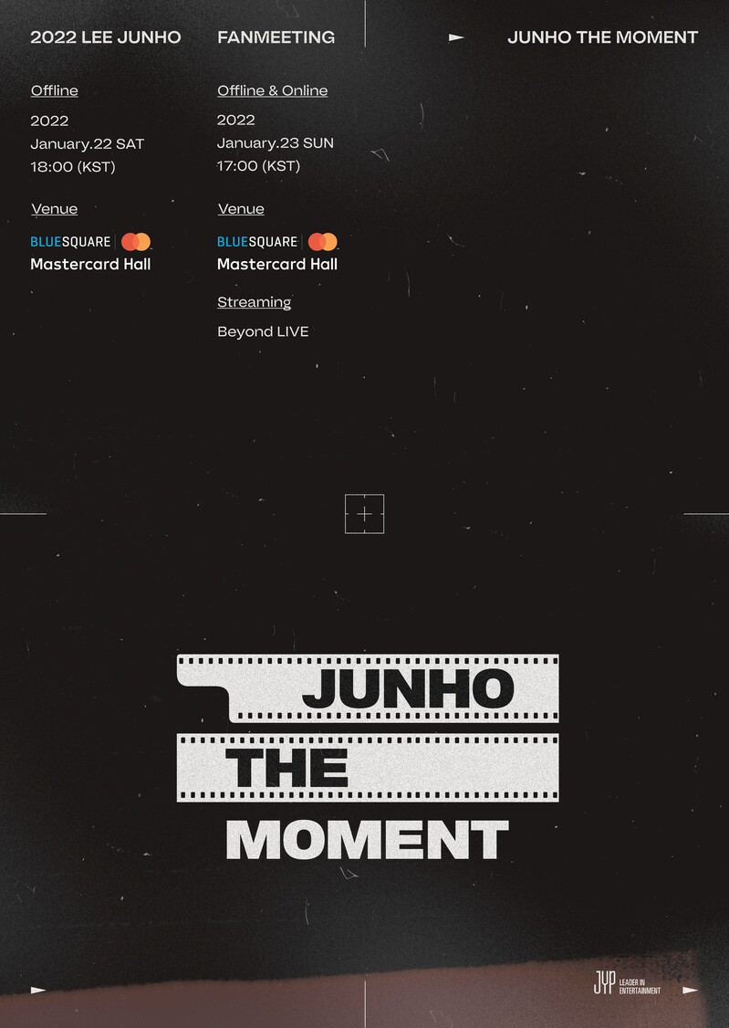 Lee Jun-ho, a member and actor of the group 2PM, will hold his solo fan meeting "JUNHO THE MOMENT" at Blue Square Mastercard Hall in Yongsan-gu, Seoul at 6 p.m. on the 22nd and 5 p.m. on the 23rd (KST) respectively ahead of his birthday (Jan. 25th), his agency JYP Entertainment announced on Monday.