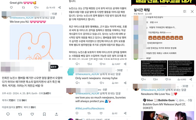 After the 135-minute live event, members from Bunnies, the official fan of NewJeans, and other supporters of the group voiced their concerns stemming from the Hybe-ADOR feud. Min also mentioned a number of prominent figures in the K-pop industry, including Hybe chairman Bang Si-hyuk, SM Entertainment founder Lee Soo-man, during the event.