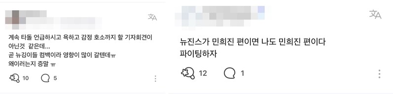A fan commented in fan-based community app WEVERSE, “It was inappropriate for (Min) to keep mentioning other idol groups, using swear words and dumping her emotional wastes. NewJeans’ comeback is just around the corner, and it’s going to affect them. What’s wrong with her?”