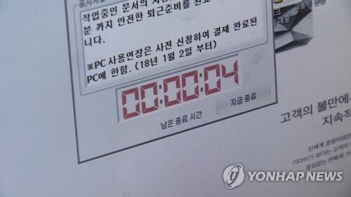 | ▲ This photo shows an alarm that notifies PC users the remaining time left on their computers. (Yonhap) |