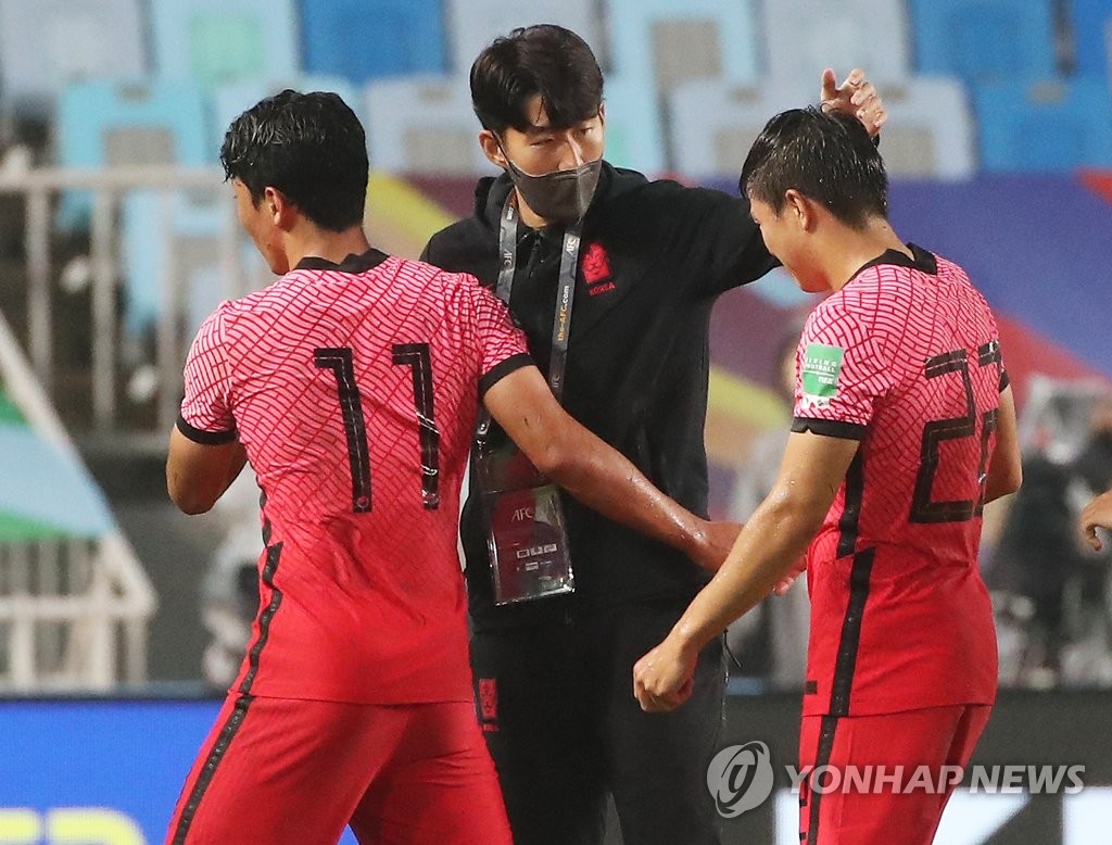 | ▲ 손흥민 '잘했어 권창훈' (수원=연합뉴스) 홍기원 기자 = 7일 오후 수원월드컵경기장에서 열린 2022 카타르 월드컵 축구 아시아 최종예선 대한민국과 레바논의 경기. 손흥민이 경기가 끝난 후 골을 넣은 권창훈을 격려하고 있다. 2021.9.7 xanadu@yna.co.kr |