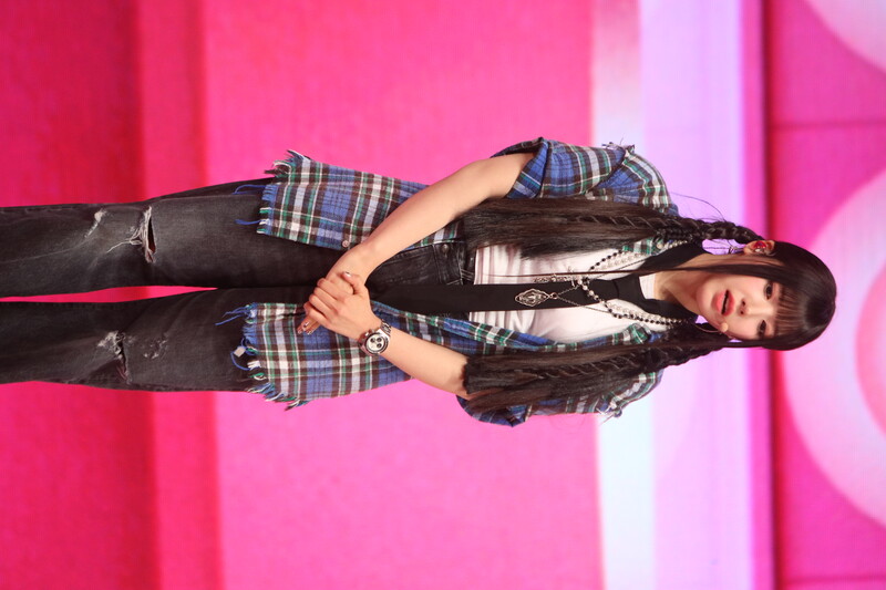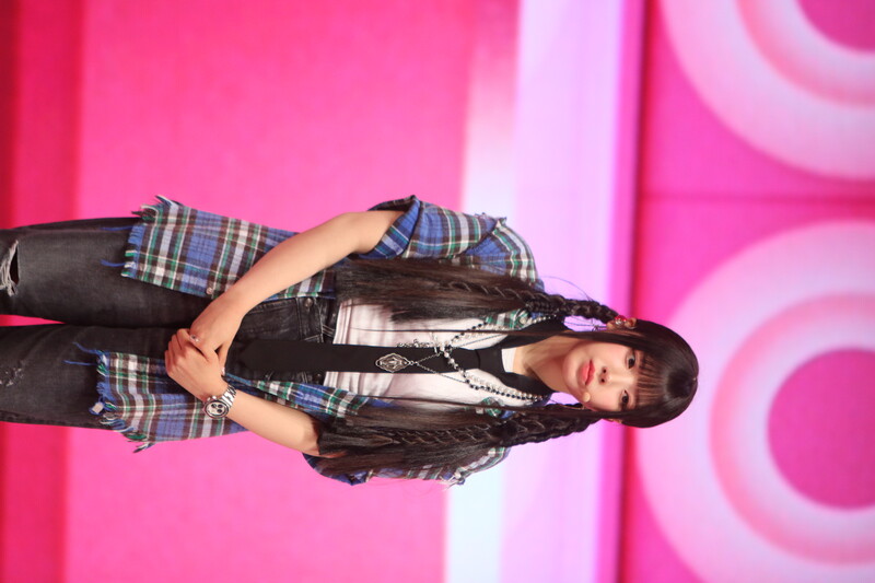 These photos, taken during the media showcase of NMIXX's first mini album "Expergo" show individual photos of the members Sullyoon, Jiwoo and Bae.