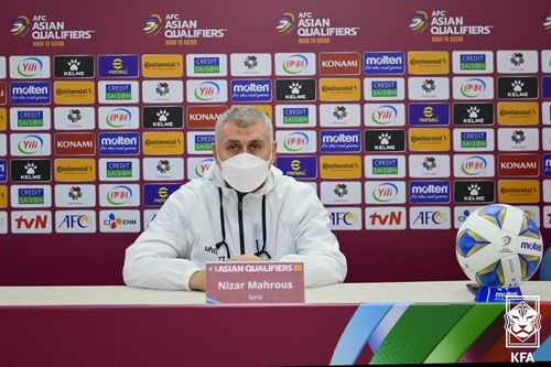(서울=연합뉴스) 최송아 기자 = 2022 카타르 월드컵 아시아 최종예선에서 한국과 맞붙는 시리아의 니자르 마흐루스 감독은 손흥민(토트넘), 황희찬(울버햄프턴) 등 한국의 유럽파 공격수들에 대한 경계심을 숨기지 않으며 승리를 다짐했다.