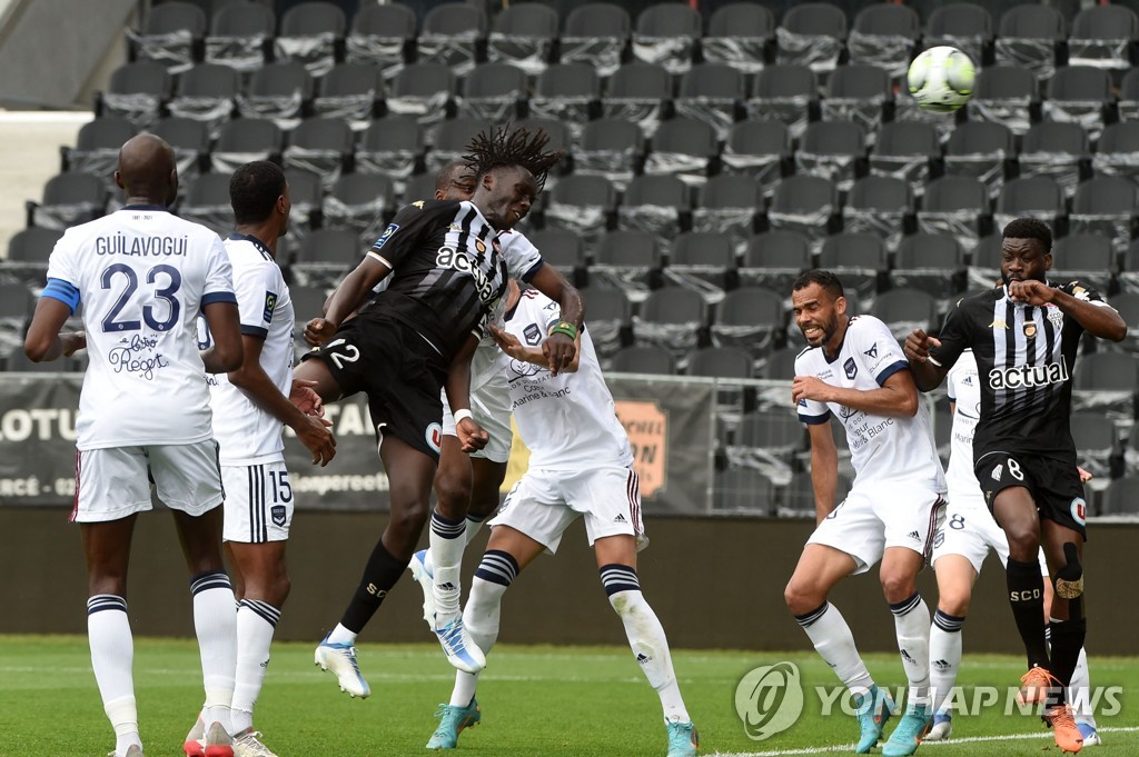 | ▲ 보르도전에서 헤딩골을 넣는 앙제의 바티스타 멘디(왼쪽에서 세 번째) [AFP=연합뉴스] |