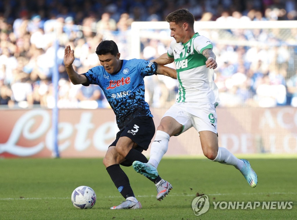 | ▲ 사수올로전에서 공을 다투는 나폴리 김민재(왼쪽). [로이터=연합뉴스] |
