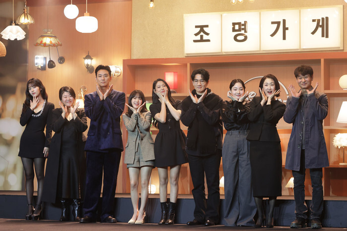 The stars of the new drama "Light Shop" an original series by Disney+ -- Shin Eun-soo, Lee Jung-eun, Joo Ji-hoon, Park Bo-young, Kim Seol-hyun, Um Tae-koo, Kim Min-ha, Kim Sun-hwa and Park Hyuk-kwon (L to R) -- pose for a photo during a publicity event in Seoul on Dec. 3, 2024. The first episode of the series will be available on Dec. 4. (Yonhap)