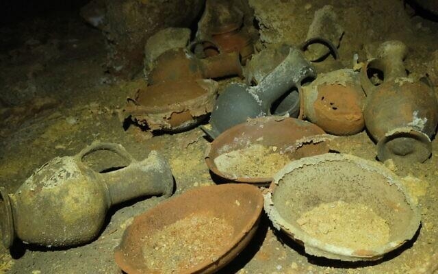| ▲ 이스라엘에서 발견된 3천300년 전 매장 동굴과 내부에서 발견된 그릇들. [이스라엘 문화재청 제공. 재판매 및 DB 금지] |