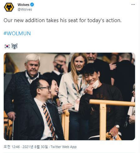 현지에 도착한 황희찬은 울버햄프턴의 몰리뉴 스타디움에서 열리는 맨체스터 유나이티드 경기를 지켜봤다.