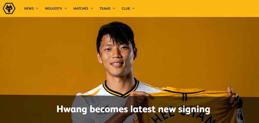 | ▲ 황희찬 영입을 발표한 울버햄프턴 [울버햄프턴 홈페이지 캡처. 재판매 및 DB 금지] |