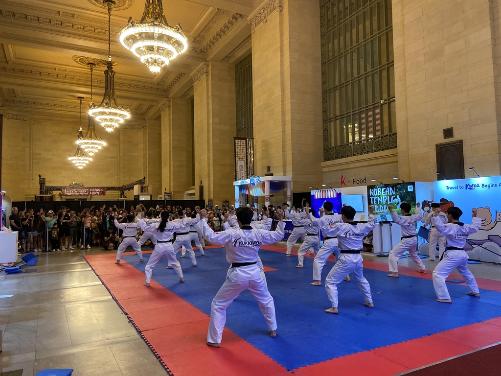 | ▲ 뉴욕 그랜드센트럴역에서 펼쳐진 국기원 태권도 시범공연 (뉴욕=연합뉴스) 22일(현지시간) 미국 뉴욕시 그랜드센트럴역에서 열린 한국문화관광 페스티벌에서 공연하는 국기원 태권도 시범단. 2022.8.22. [한국관광공사 뉴욕지사 제공. 재판매 및 DB 금지] |