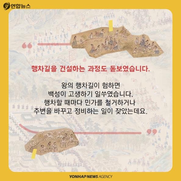 왕의 행차길이 험하면 백성이 고생하기 일쑤였습니다. 행차할 때마다 민가를 철거하거나 주변을 바꾸고 정비하는 일이 잦았는데요.