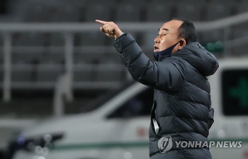 | ▲ In this file photo from Oct. 9, 2020, Kim Hak-bum, head coach of the South Korean men's under-23 national football team, directs his players during an exhibition match against the men's senior national team at Goyang Stadium in Goyang, Gyeonggi Province. (Yonhap) |