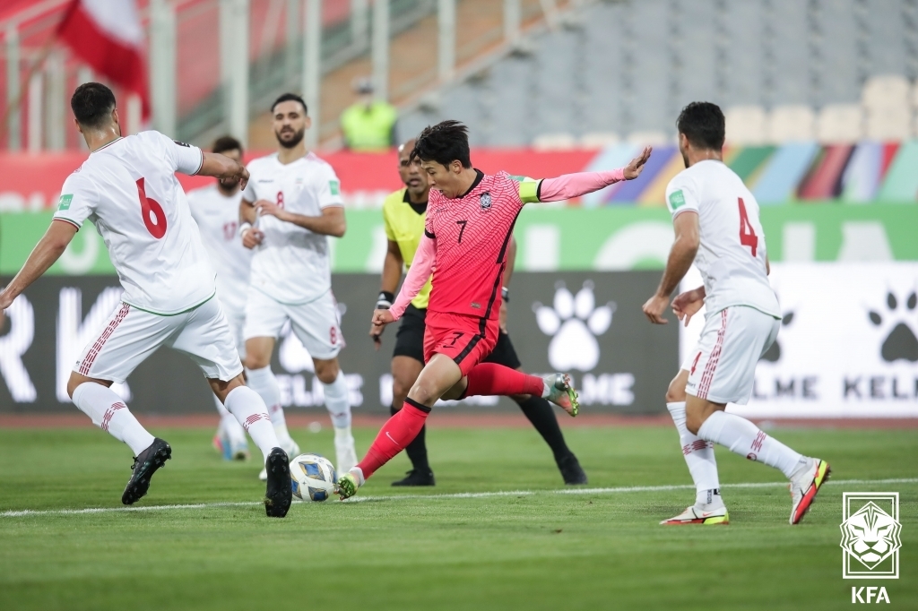 His 48th-minute goal at Azadi Stadium gave South Korea a 1-0 lead over the favored Iran in their Group A match in the final Asian qualification round for the 2022 FIFA World Cup. Last Thursday, Son had scored the go-ahead goal in the 89th minute for a 2-1 victory over Syria at home. And for about half an hour at Azadi, a place where South Korea had never won before, it appeared as though Son's goal would stand as the winner for the Taeguk Warriors. South Korea even caught a lucky break when Saeid Ezatolahi's right-footed shot rang off the left goal post in the 67th minute.