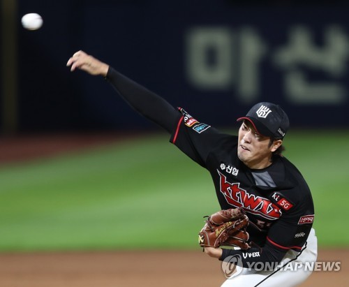 | ▲ 역투하는 kt 주권 9일 서울 고척 스카이돔에서 열린 2020 프로야구 포스트시즌 플레이오프 1차전 두산 베어스와 kt wiz의 경기. 7회초 kt 투수 주권이 역투하고 있다. [연합뉴스 자료사진] |