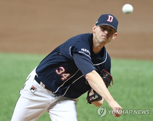 '11K쇼' 또 펼친 두산 플렉센 "박세혁 덕분에 투구 수 조절"