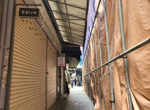골목 초입에 들어서자 공사 현장임을 알리는 천막과 철근들이 곳곳에 설치돼 있었다.