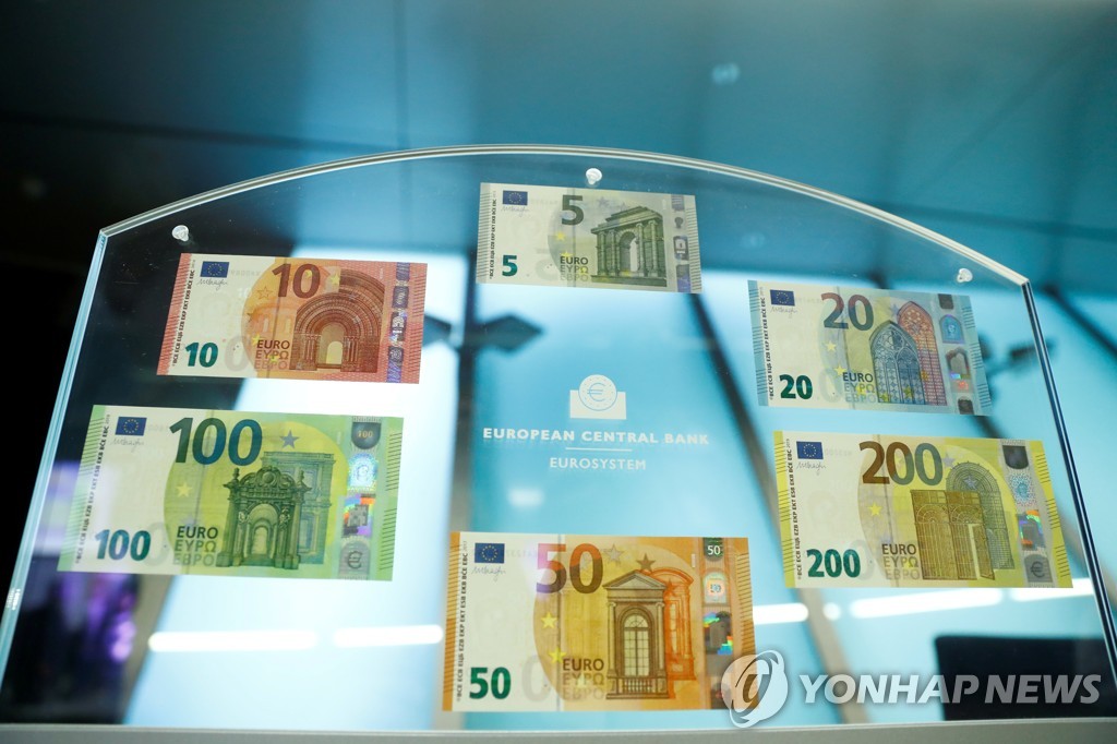 | ▲ ECB-DIGITAL/EURO FILE PHOTO: The complete Europa series, with the new 100- and 200-euro banknotes, is displayed during a presentation at the ECB headquarters in Frankfurt, Germany, September 17, 2018. REUTERS/Kai Pfaffenbach/File Photo |