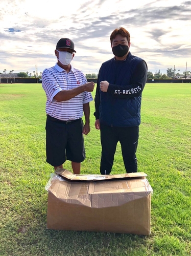 | ▲ 미국 대학 야구팀에 기부한 최지만 [GSM 제공. 재판매 및 DB 금지] |