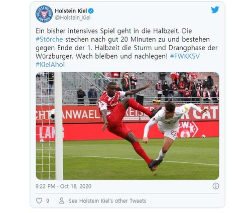 제라의 득점으로 리드를 잡은 킬은 후반 30분 라르스 디츠의 자책골을 더해 뷔르츠부르크에 2-0 승리를 거뒀다.