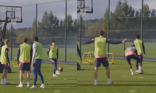 (서울=연합뉴스) 안홍석 기자 = 주말 웨스트햄 유나이티드전을 앞두고 'KBS 트리오'를 비롯한 토트넘 선수들이 '농구 훈련'으로 분위기를 끌어올렸다.