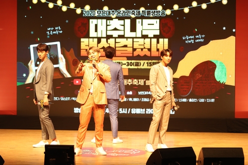 (보은=연합뉴스) 심규석 기자 = 충북 보은군이 이달 30일까지 여는 '보은대추 온라인축제' 프로그램인 랜선 버스킹 '대추나무 랜선 걸렸네'가 인기몰이 중이다.
