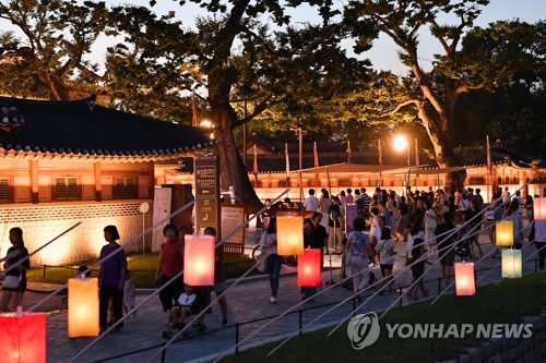 (수원=연합뉴스) 김인유 기자 = 한여름 경기 수원시의 대표축제로 자리매김한 '밤빛 품은 성곽 도시, 수원 문화재 야행(夜行)'이 올해는 오는 23∼25일 수원화성과 행궁동 일대에서 가을축제로 열린다.
