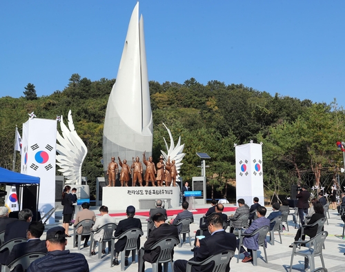 (무안=연합뉴스) 여운창 기자 = 전남도는 30일 무안군 전남도립도서관 맞은편 공원에서 '전라남도 항일독립운동기념탑' 제막식을 개최했다.
