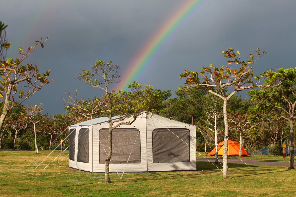 | ▲ 타프쉘이 설치된 오키나와 캠핑장 [캠핑ABC 제공] |