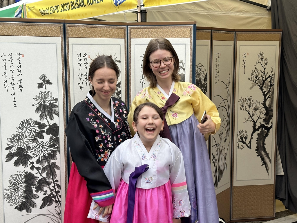 | ▲ 한복 체험하는 방문객들 (브뤼셀=연합뉴스) 정빛나 특파원 = 18일(현지시간) 지난 18일(현지시간) 벨기에 브뤼셀 시내 광장에서 열린 '한류타운 인 벨기에' 행사장에서 방문객들이 한복 입어보기 체험을 하는 모습. 2023.6.19 shine@yna.co.kr |