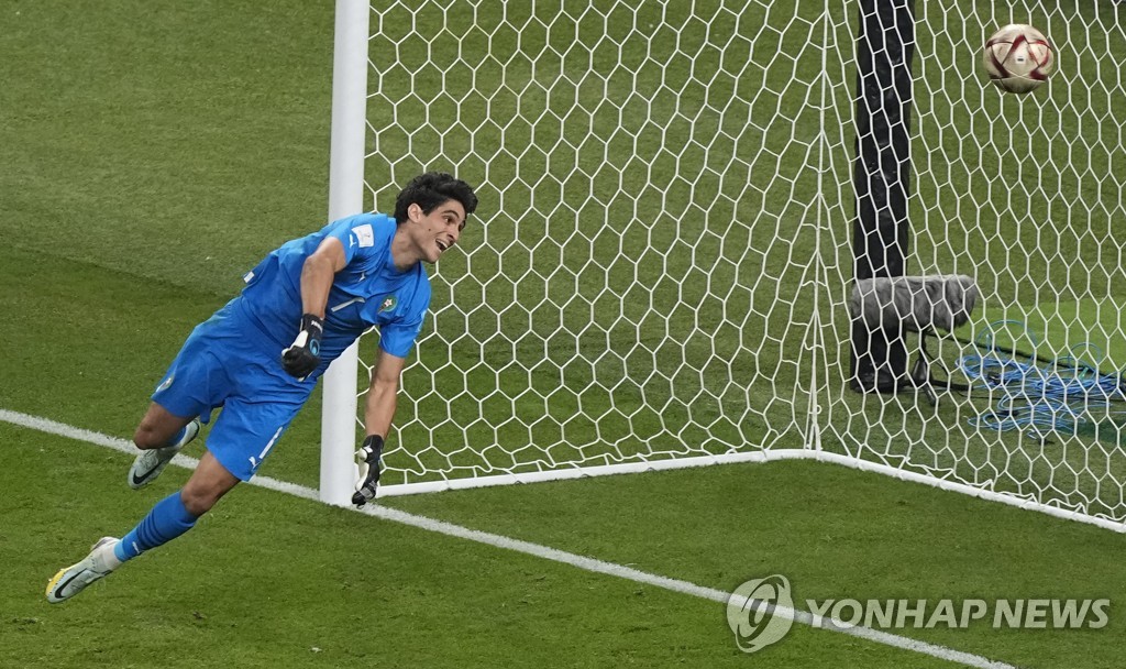 모로코 골키퍼 야신 부누(세비야)가 몸을 날렸으나 슈팅은 오른쪽 포스트를 맞고 골대 안으로 향했다.