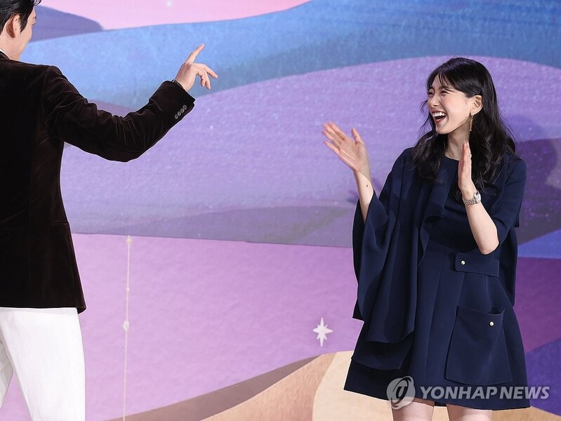 | ▲ Bae Suzy (R) laughs during a press conference for "Genie, Make a Wish" in Seoul on Sept. 29, 2025. (Yonhap) |